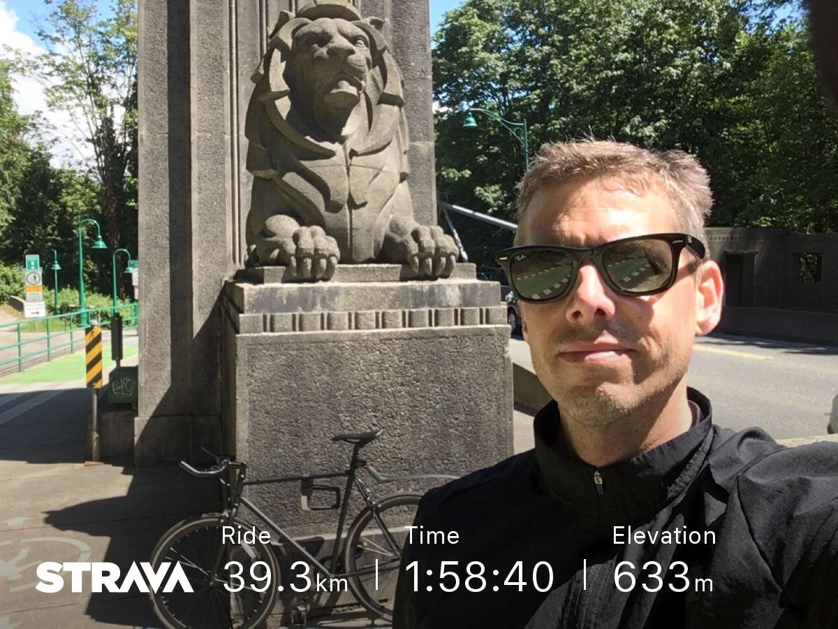 IMG_3660C76A799C-1 Resting my shinbone with a two-bridges bike ride to North Van and back. Don’t let the smile fool you I still hate bridges.